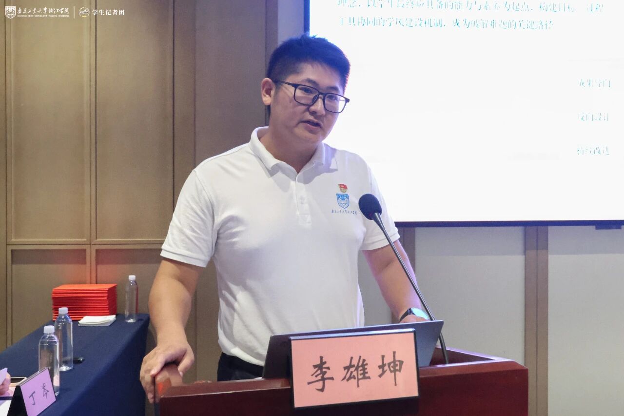 酒店与饮食文化学院李雄坤以《承精神之脉 启数智新程》为题,强调将淮海战役精神融入工作,构建全员育人格局、激发学生主体意识。