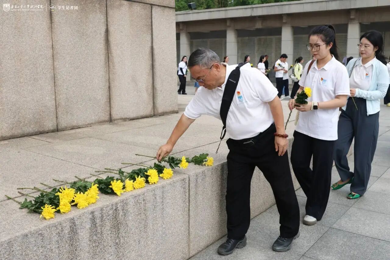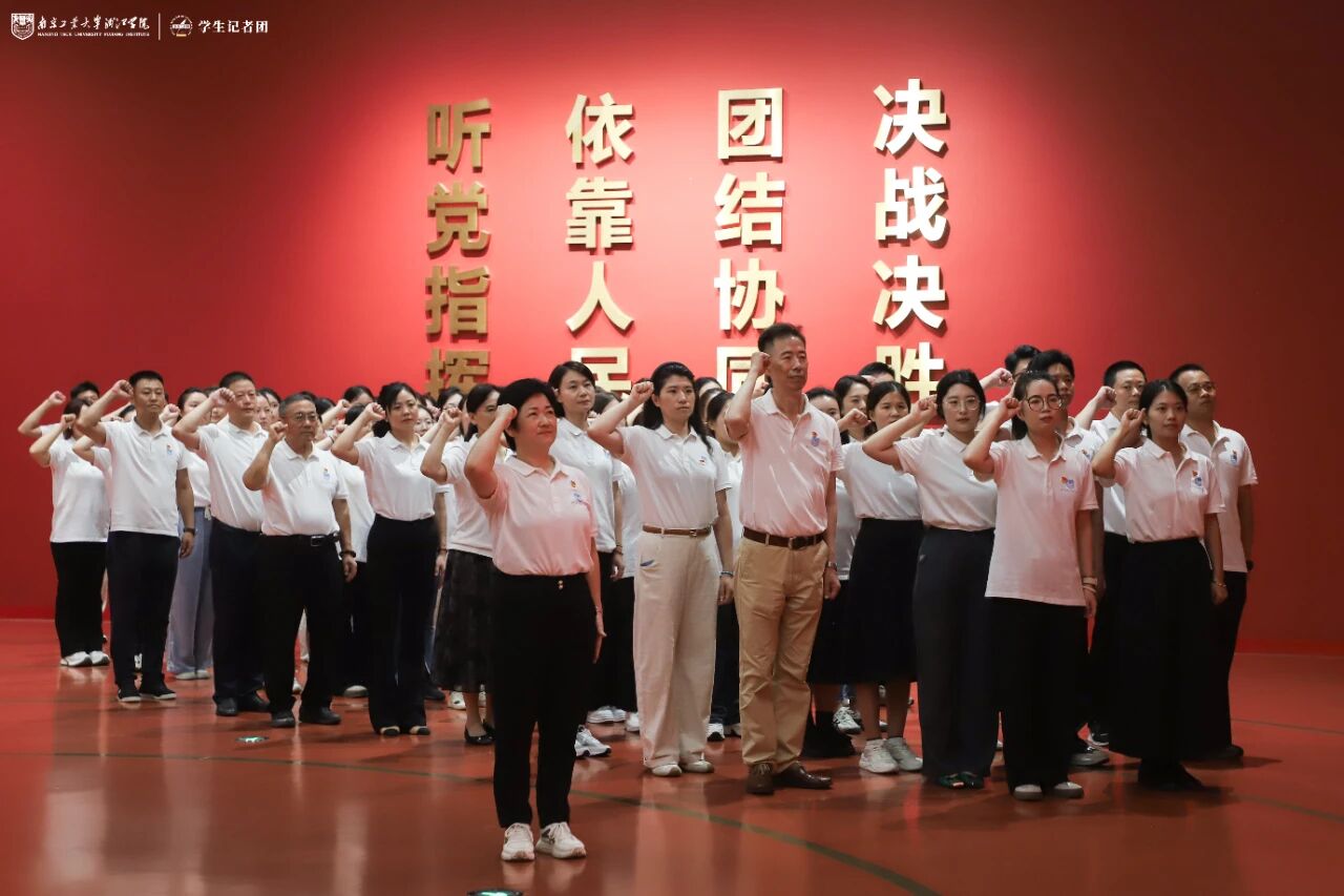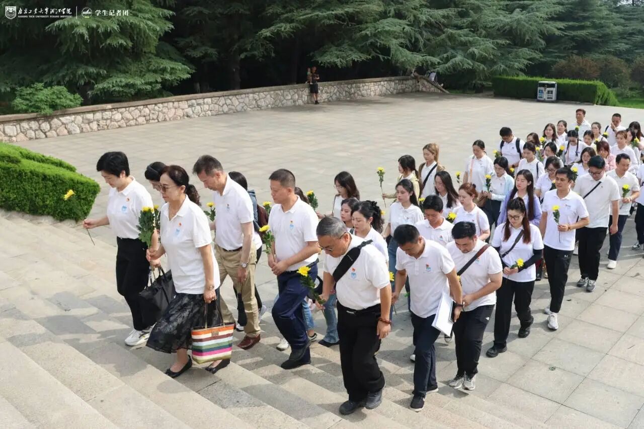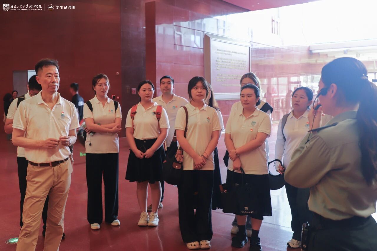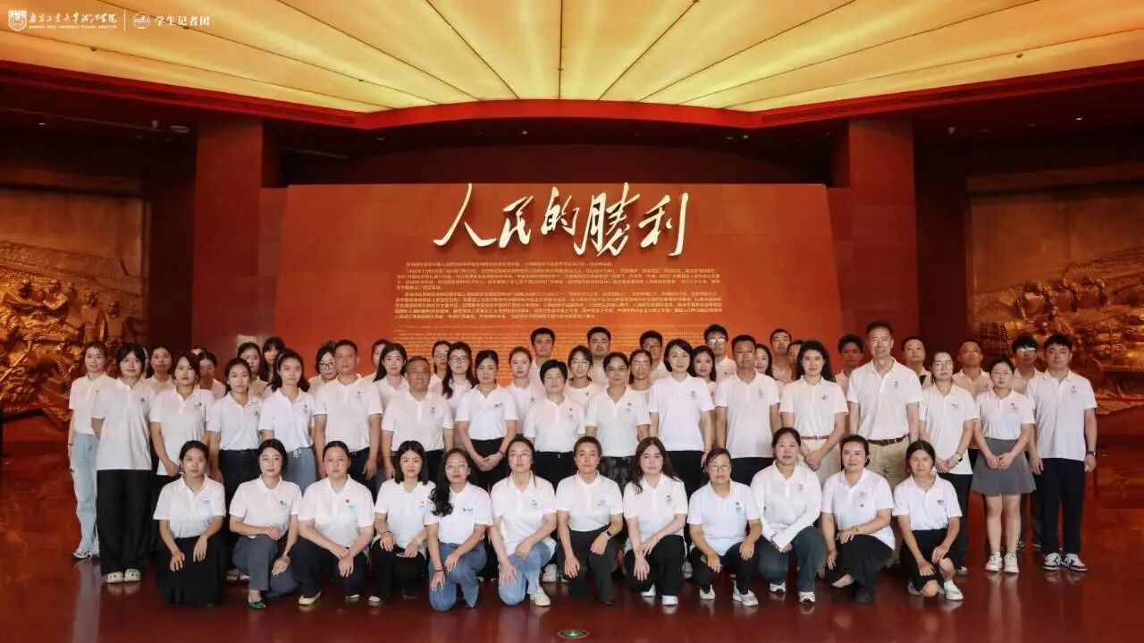 8 月 27 日,培训班赴淮海战役纪念馆、徐州博物馆开展实地研学,在红色教育中淬炼初心。辅导员们怀着崇敬之心瞻仰淮海战役纪念塔,通过敬献花篮、默哀致意,深切缅怀革命先烈;在学校党委委员、校长助理朱新娣同志带领下,全体学员面向党旗重温入党誓词,铿锵誓言中熔铸对党的忠诚,坚定为教育事业奋斗的理想信念。
