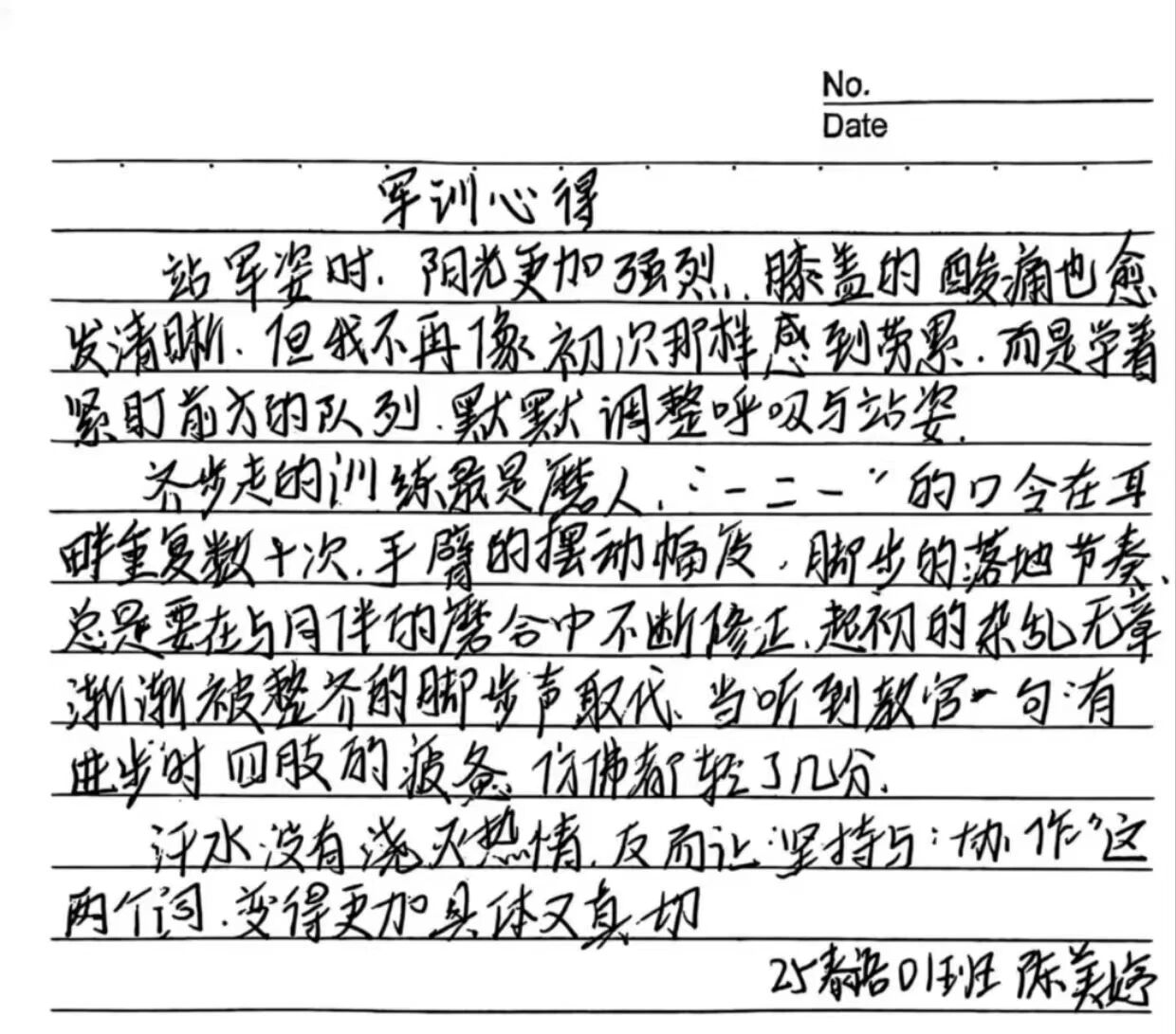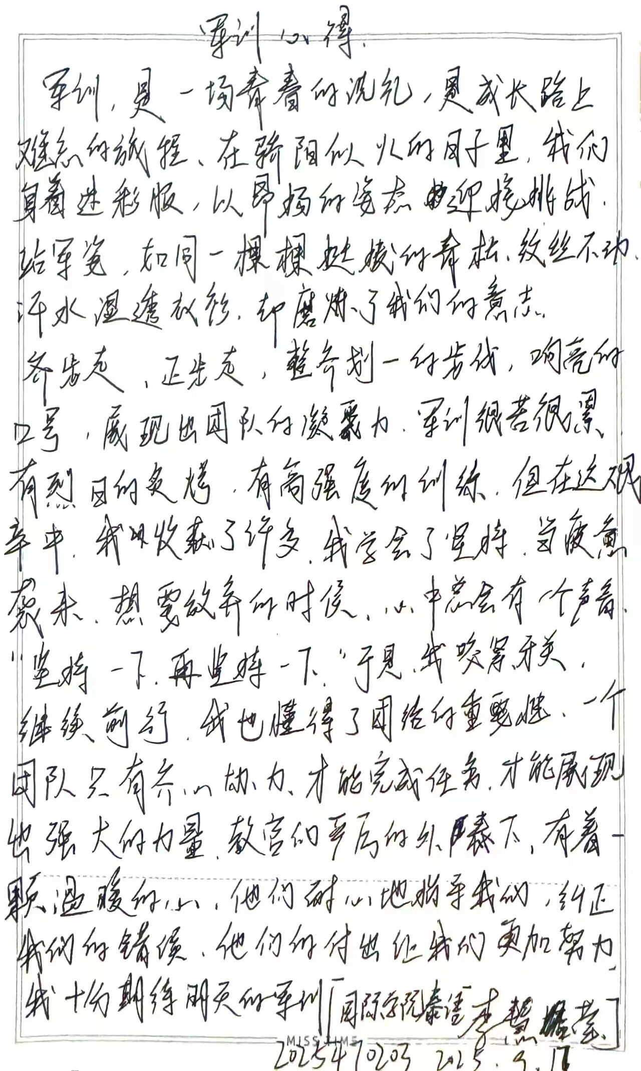 时光会见证所有成长,迷彩会铭记每一份拼搏。这段用汗水浇灌的日子,教会我们的不仅是整齐划一的动作,更是刻进骨子里的纪律意识、熔铸进血液的集体荣誉、点燃在胸膛的爱国热血。