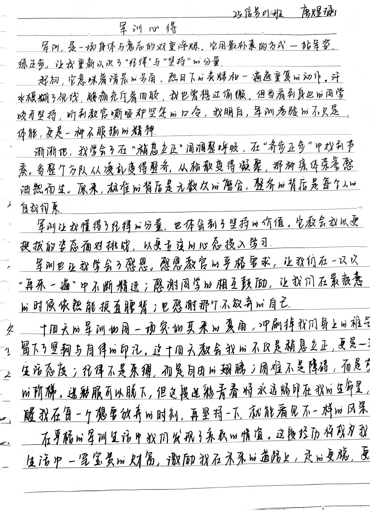 军训不仅是对新生身体素质的严酷考验,更是一场深刻的心理成长蜕变。下面,让我们一同翻开不同专业新生的军训手札,品读他们的蜕变心语。