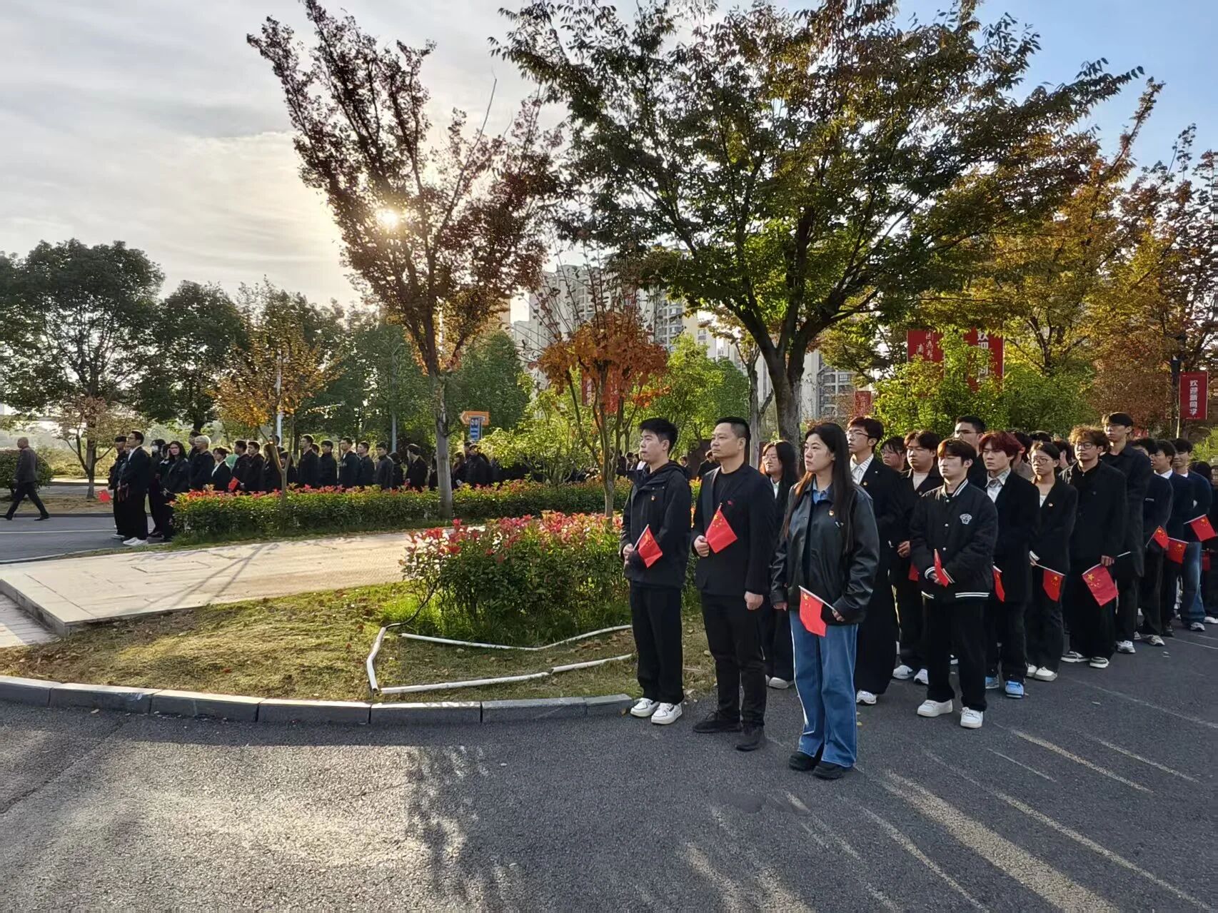 当晨光破晓,洒向充满朝气的校园,当国歌奏响,激荡起心中滚烫的家国情怀。为纪念抗日战争暨世界反法西斯战争胜利80周年,传承先烈精神、厚植爱国情怀,引导学生以青春担当践行强国使命,南京工业大学浦江学院机电与汽车工程学院联合校国旗护卫队,于2025年11月3日举行“赓续抗战薪火,谱写强国新篇”学院主题升旗仪式。