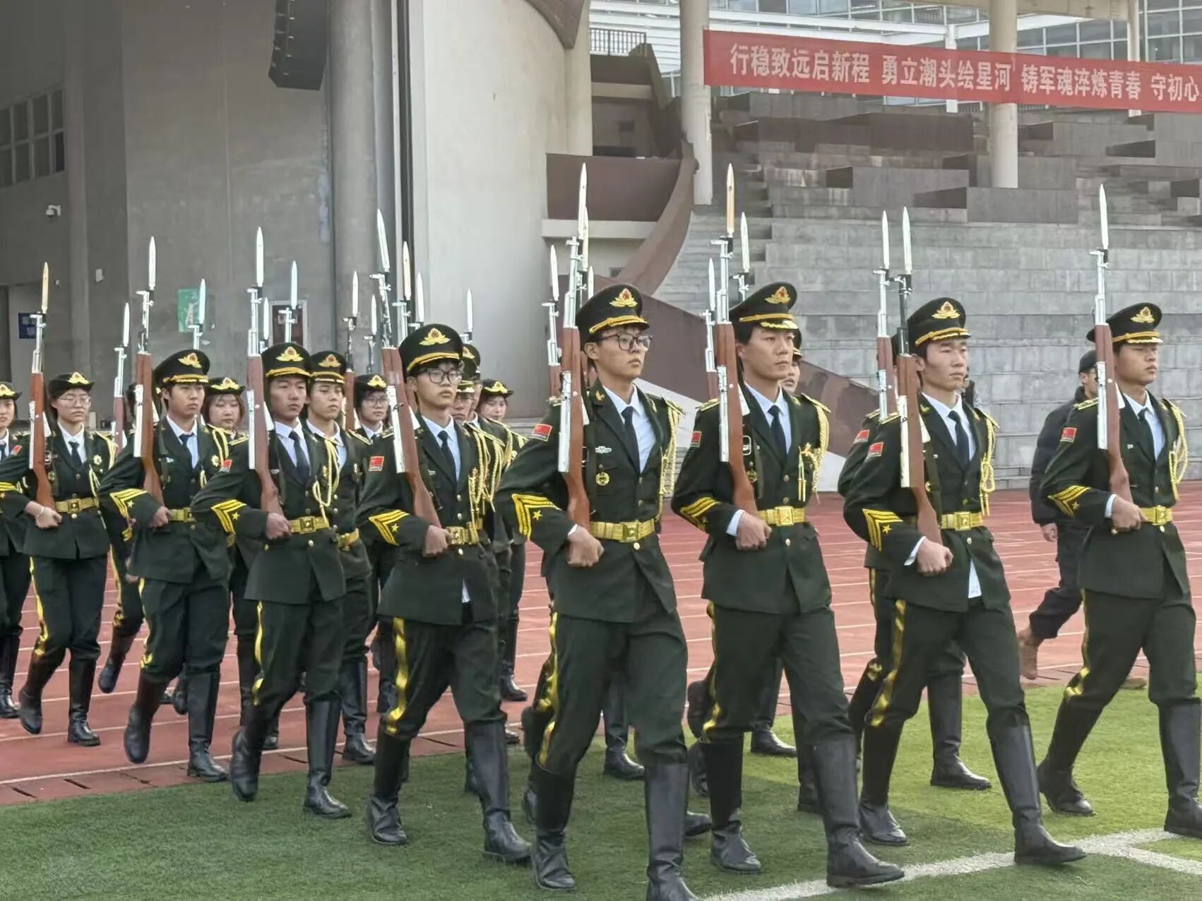 目光如炬若寒星闪烁,凝聚着对国旗的赤诚敬畏,饱含着对家国的滚烫深情。每一步75厘米的精准丈量,是对使命的庄严应答;每一次沉稳坚定的落脚,是对信仰的无声告白,将浦江学院国旗护卫队的忠诚担当与青春热血,镌刻在校园的晨光里,激荡出跨越时空的红色回响。
