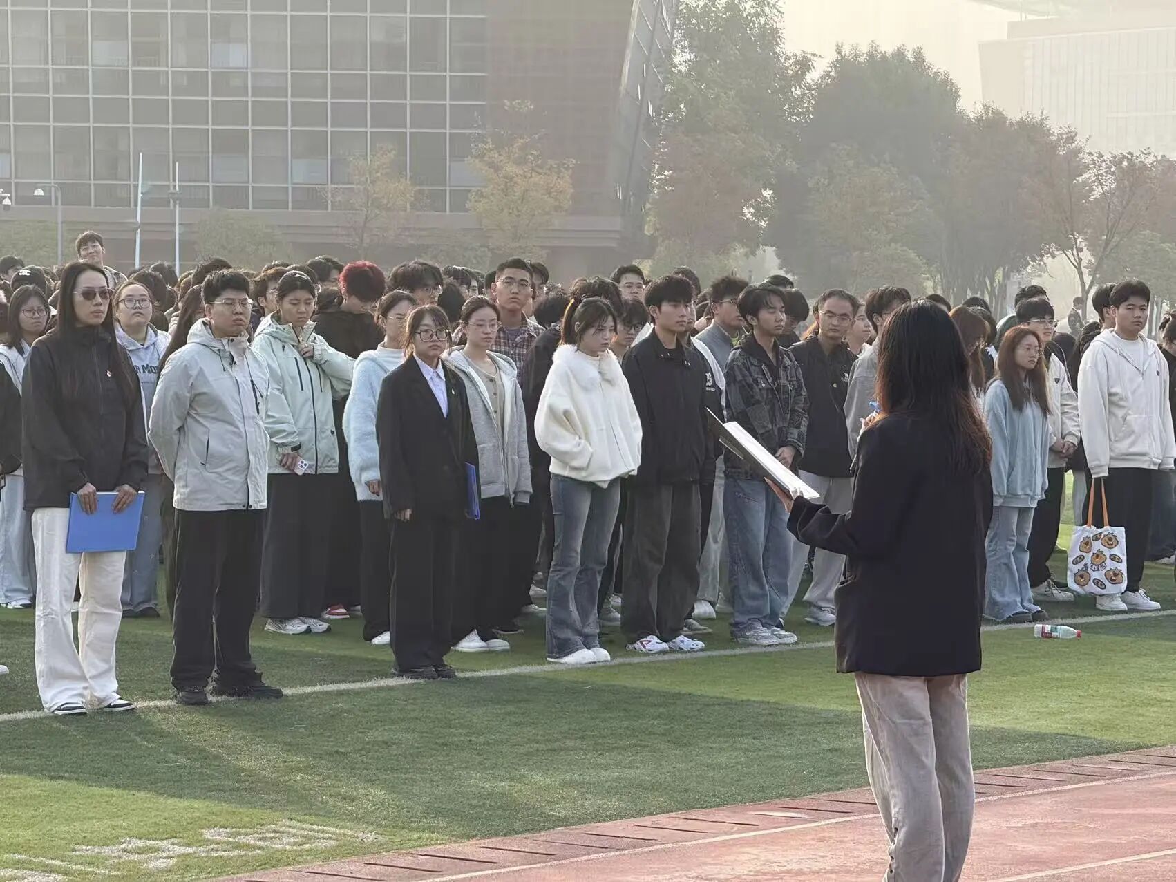 升旗仪式后,陆威老师登台回溯红色征程,分享建工先辈初心坚守,号召学子以先烈为榜样、以专业为羽翼,将诚信品格融入求学择业,把爱国情怀化为强基建、兴家国的行动,勉励大家志存高远、勤学笃行,将个人理想融入国家大局,锤炼本领成长为担当民族复兴大任的时代新人。