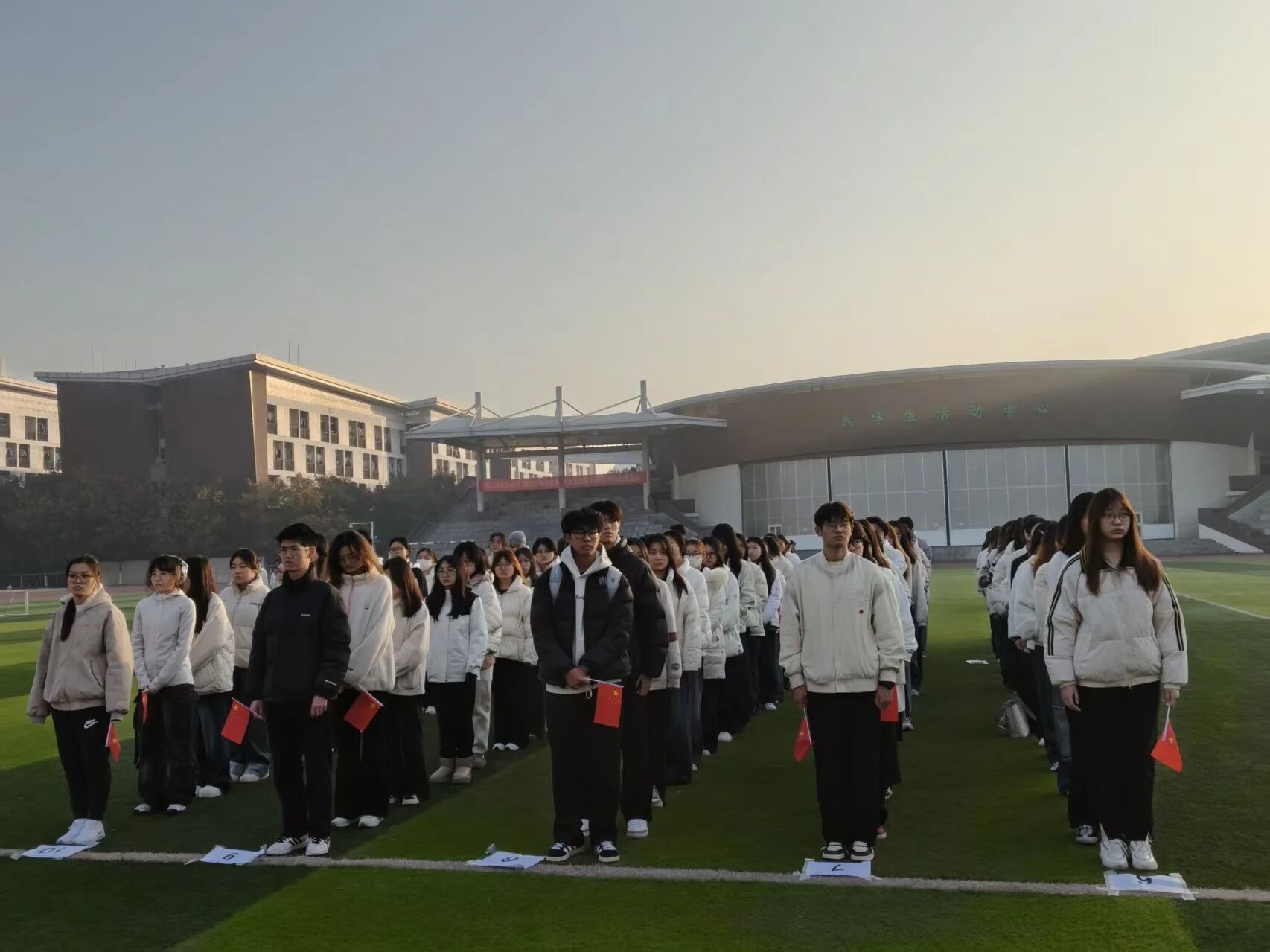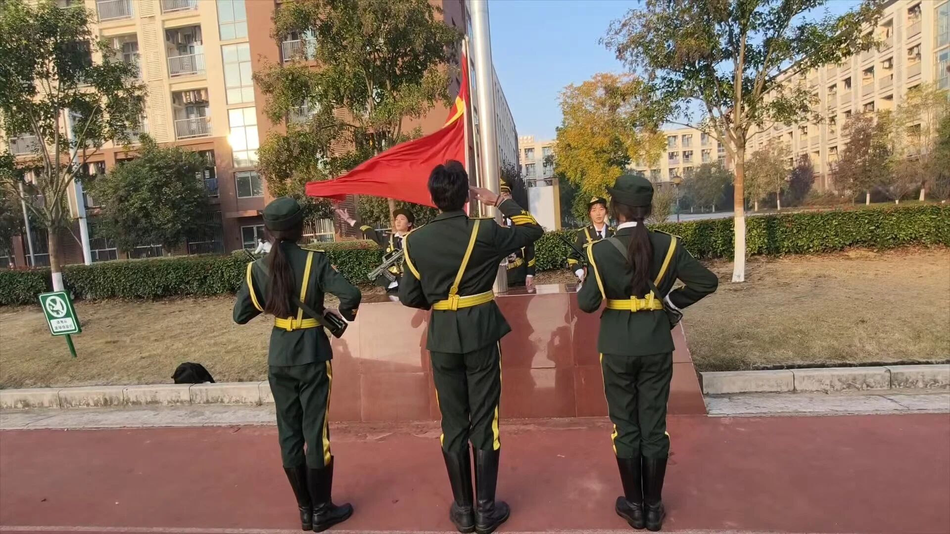 伴随着雄壮激昂的《义勇军进行曲》,五星红旗冉冉升腾、猎猎迎风,全体师生肃立致敬、注目苍穹、齐唱国歌,饱含着对祖国母亲的赤诚眷恋,对革命先烈的崇高敬意,更凝聚着对和平岁月的无限珍视与矢志守护。
