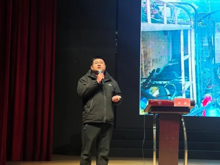 王磊老师聚焦宿舍消防安全,通过回顾多起典型校园火灾案例,强调寝室防火的重要性。他详细列举了电器集中使用、线路老化、人走未断电、违规使用大功率电器、宿舍吸烟、杂物堵塞通道、擅自破坏消防设施等常见隐患,并现场演示了灭火器“拉封条、拔保险销、瞄根部、按压喷射”四步操作法。此外,他还讲解了湿毛巾捂口鼻防烟、手背试探门把手温度、优先选择安全通道逃生等实用技巧,提醒大家科学应对火情。
